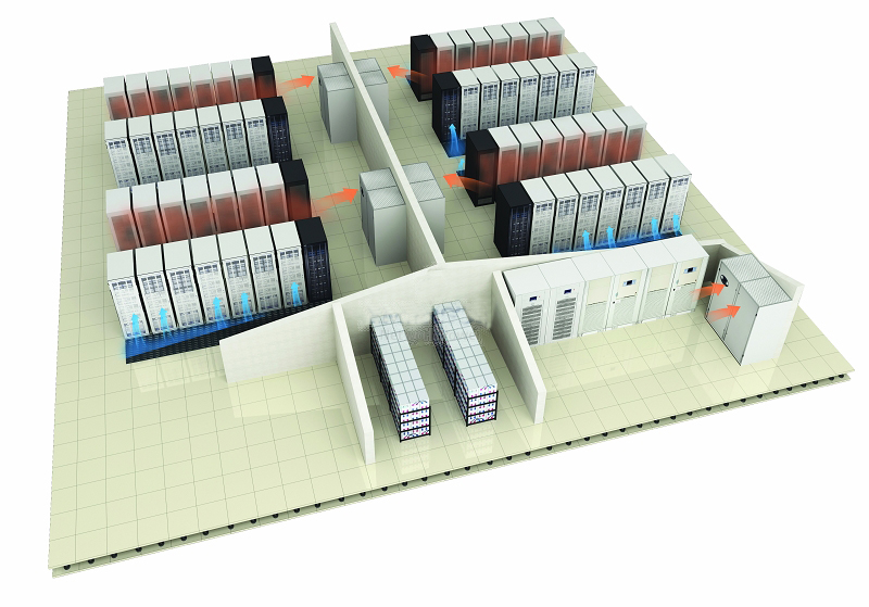 在某些功率密度特別高場合(發熱量超過5kw/機柜),往往容易產生局部熱點,形成故障隱患。為消除局部熱點,需要采用相應的高熱密度解決方案,如開放式方案即為在局部熱點發生處加裝制冷終端XD,加強局部制冷能力,以消除局部熱點;封閉式方案即為高功率密度設備放置在封閉機柜內,通過機柜內制冷循環,高效率制冷散熱。