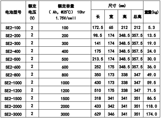 ??????SE2V系列電池設計壽命為15年,正常浮充使用壽命10年以上。